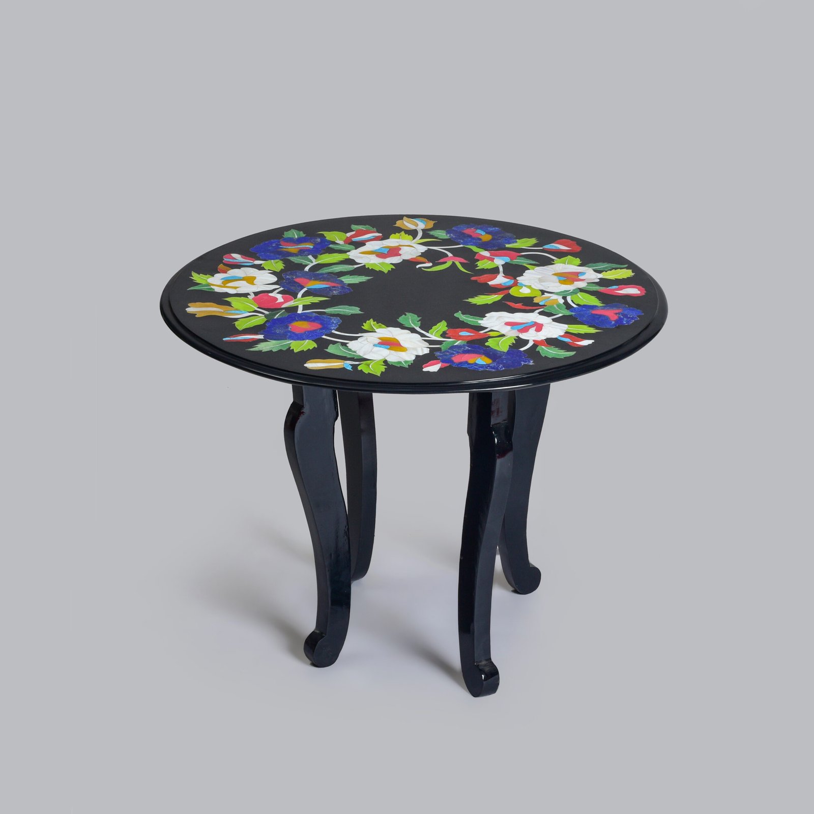 A trail of intensity winds across the tabletop, fluid, graceful, and alive with colour. With a floral design with vibrant hues, its presence is unmistakable. The design radiates with a quiet power, turning even the softest light into something brilliant. There’s an alchemy at play here: how form and tone come together to elevate the everyday, lending the room a sense of clarity, upliftment, and ease. Every detail is placed with purpose, every curve a moment of movement frozen in time. This is a piece that doesn’t just decorate, it transforms.