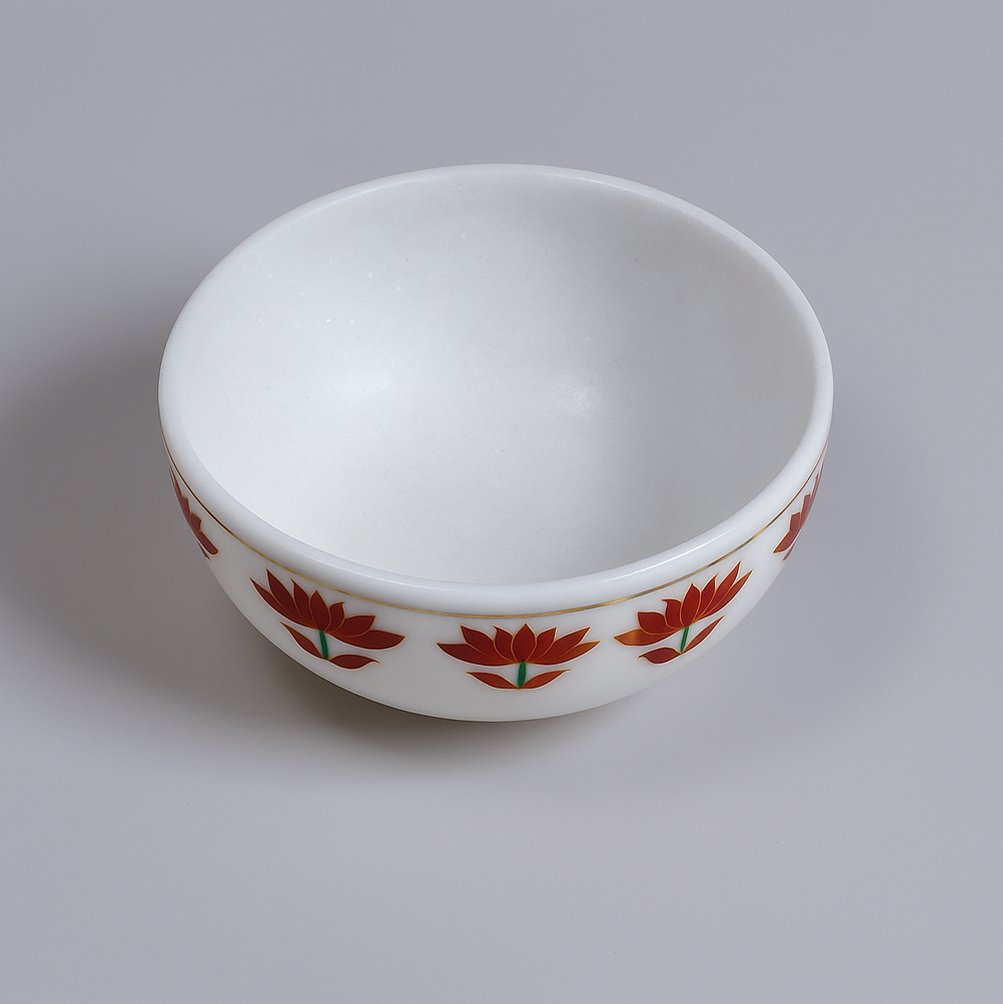 An exquisite blend of heritage and artistry, this marble bowl is adorned with intricate floral patterns crafted using the centuries-old parchinkari technique. Each bloom is brought to life with carefully inlaid semiprecious stones, adding subtle radiance to its pristine surface. The result is a masterpiece that speaks of timeless luxury and meticulous craftsmanship. More than a functional object, it serves as a collector’s piece, perfect for elevating coffee tables, consoles, or dining spaces. A celebration of tradition reimagined for contemporary interiors.