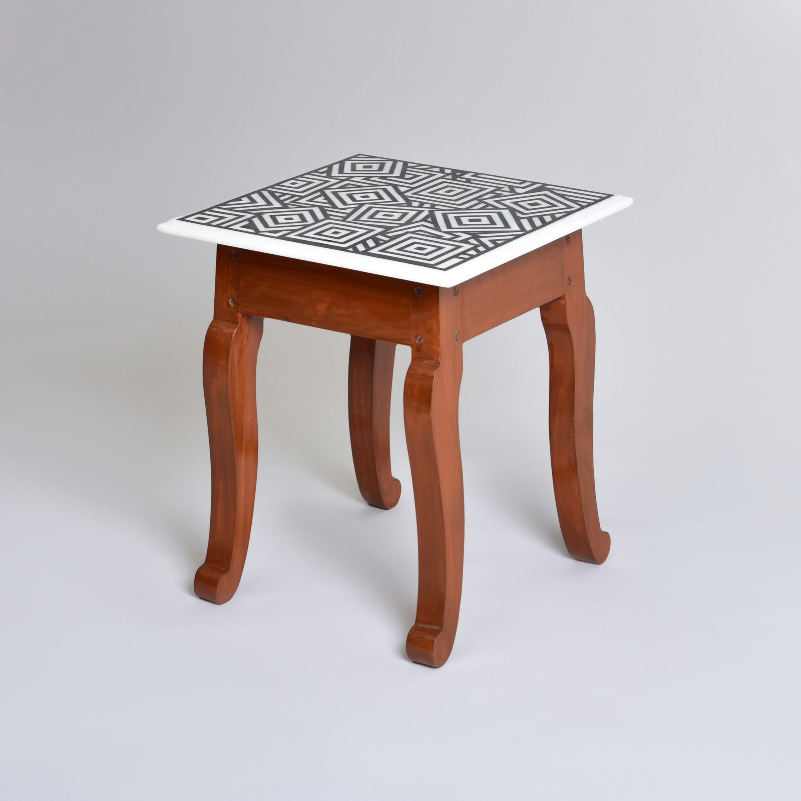 A quiet interplay of symmetry and abstraction, this square white marble table brings structure and softness together. Hand-inlaid with semi-precious stones using the traditional Parchinkari technique, its repeating square motifs unfold like a modern patterns, subtle, deliberate, and endlessly intriguing.