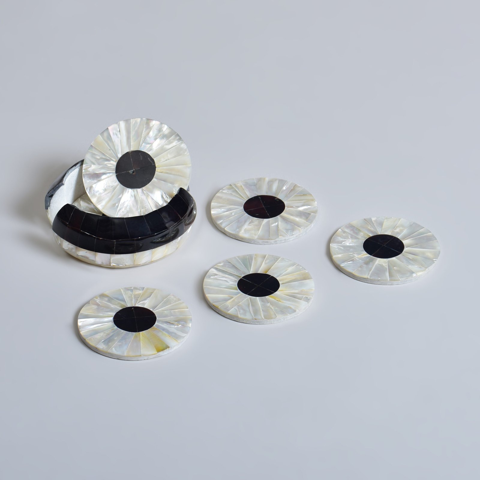 Rooted in the ancient Parchinkari technique, this marble coaster set is a refined celebration of art, earth, and enduring craftsmanship. At the heart of each coaster lies a striking brown mother of pearl, encircled by radiant white mother of pearl, an elegant contrast brought to life through the delicate inlay of these semi-precious stones.