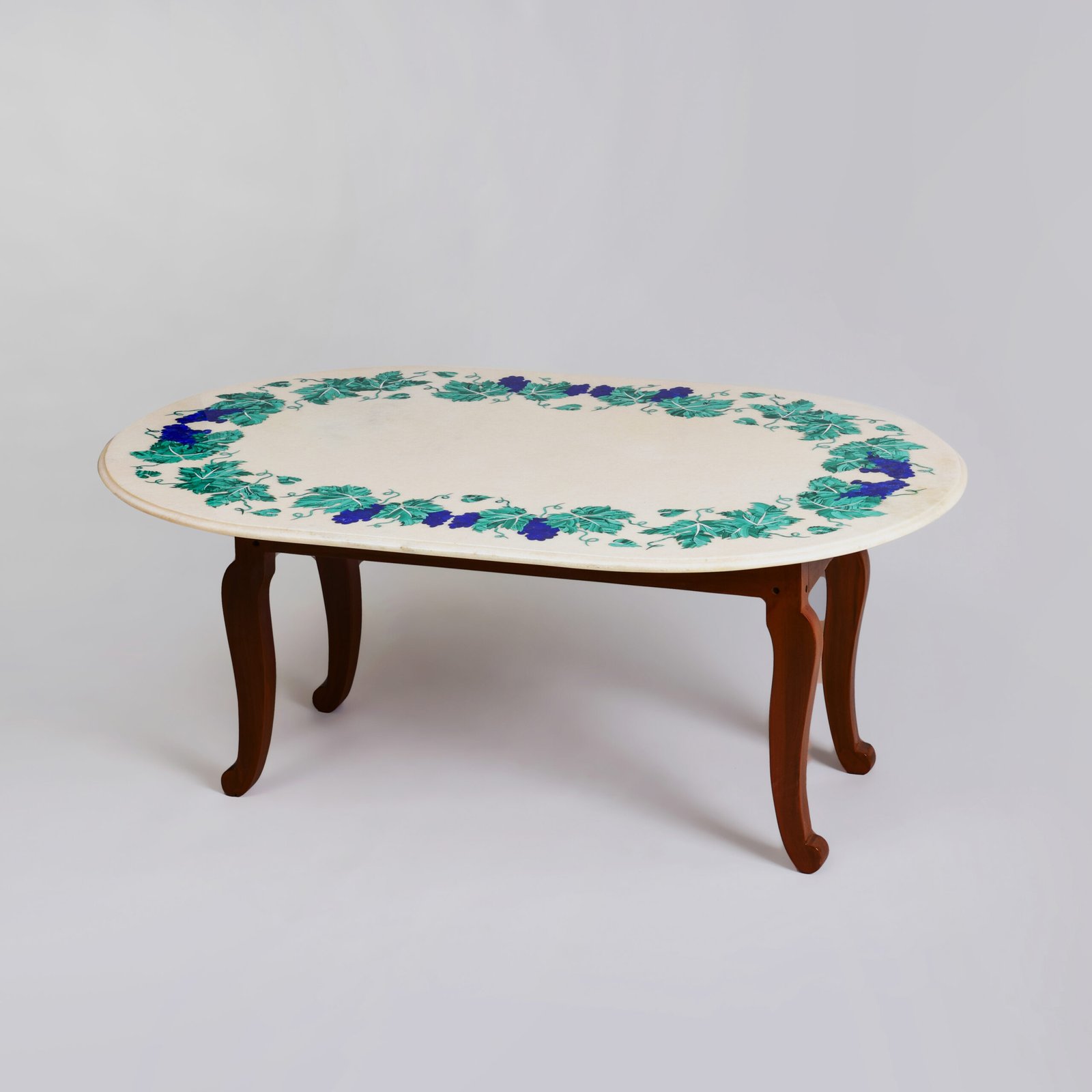 Some beauty never fades, and Eternal Forest ensures it never has to. A coffee table that feels like a preserved bloom, this piece is carved from beige marble and hand-inlaid with semi-precious stones, each one meticulously placed using the Parchinkari method. The floral composition is lush yet refined, deeply expressive. Its rounded silhouette offers the perfect canvas for the organic motif, striking a harmonious balance between form and flourish.