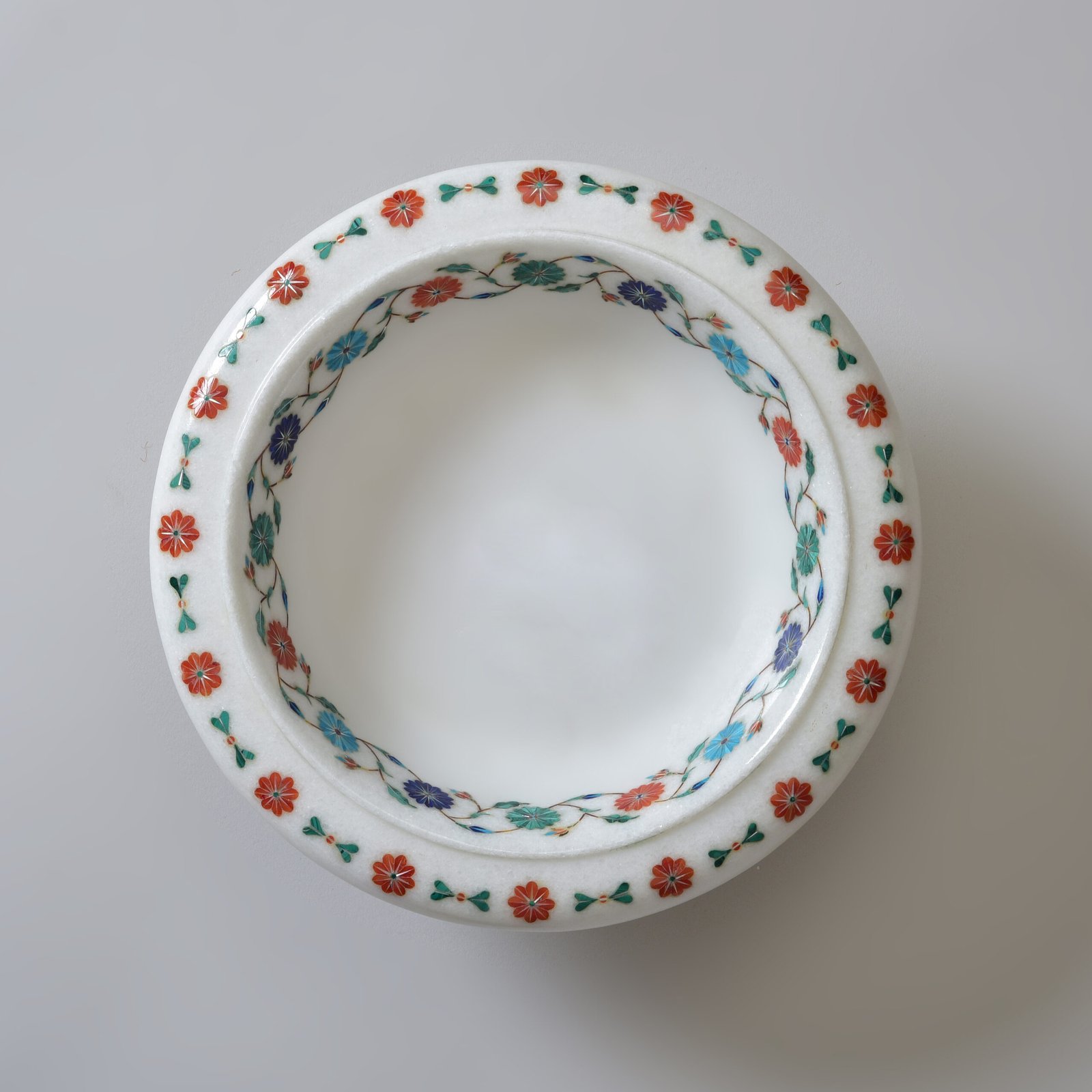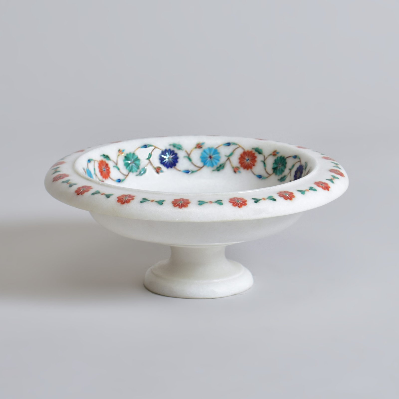 Spring fades, but beauty like this remains. This bowl captures the joy of blooming flowers and preserves it forever in white marble. The inlaid floral patterns shimmer gently under natural light, adding depth and softness to the hard stone. Whether on a kitchen island or bedside table, this piece acts like a pause button, drawing attention, slowing time, elevating the everyday.