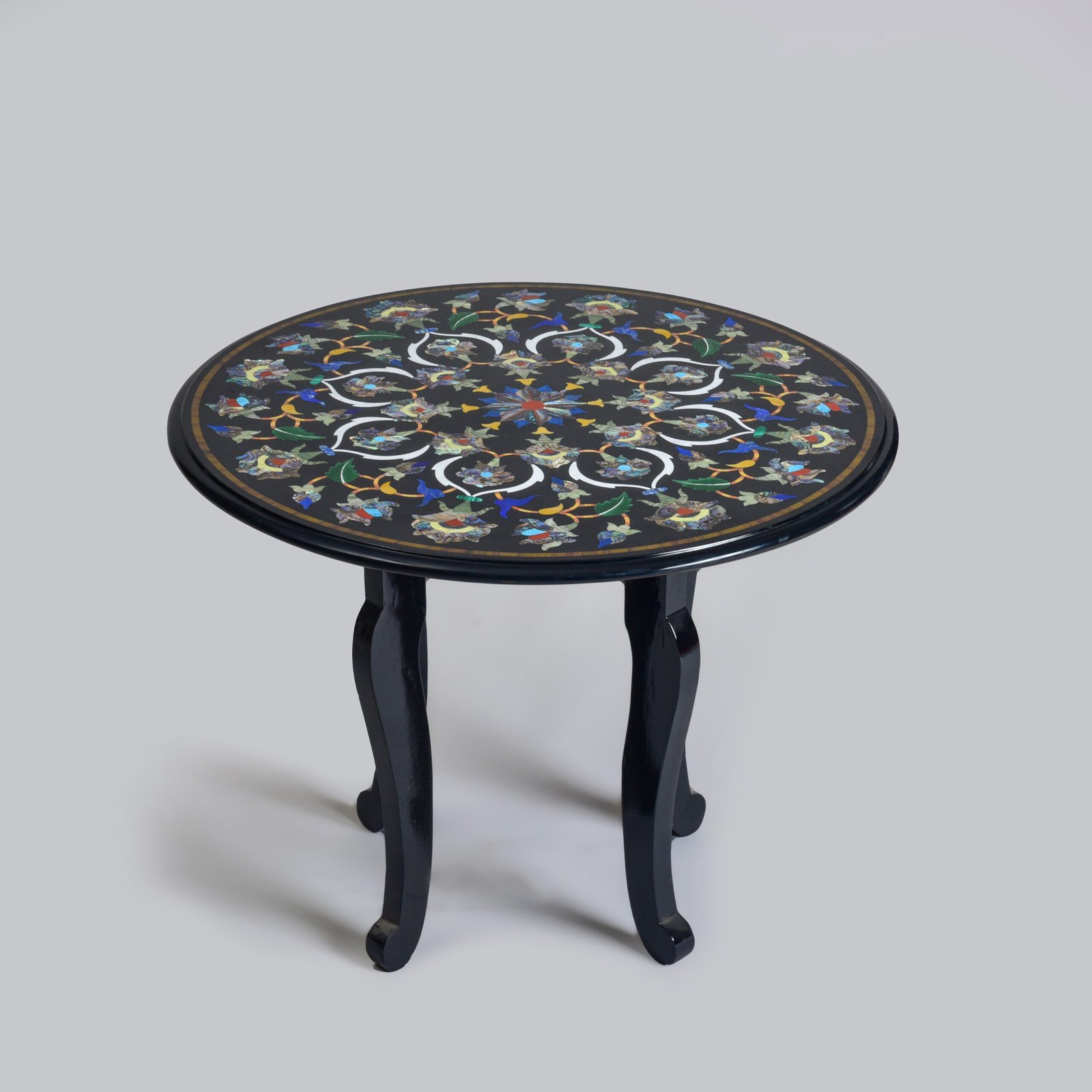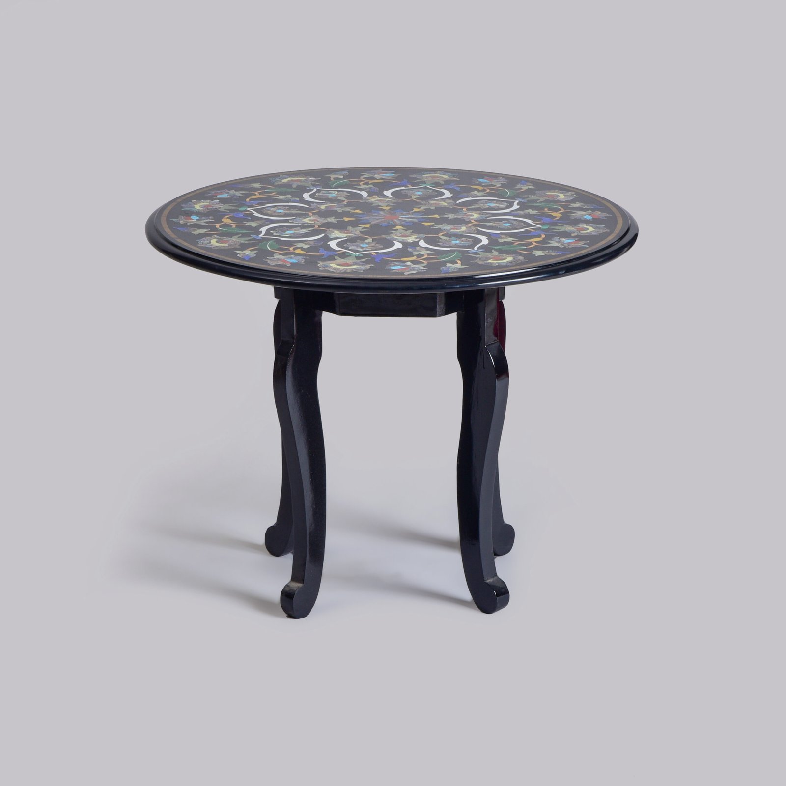 Dark as a night sky, with intricate floral inlay, this table draws the gaze with its deep, polished surface. Crafted from obsidian-toned marble, the table gleams with quiet drama, its understated luxury unfolding in shadow and light. The silhouette is refined, with just enough curve to soften its structure. Set beside a linen armchair or velvet chaise, it transforms the corner into a scene. It invites pause. Reflection. Perhaps even a sip of something strong. In every way, it is elegance distilled.