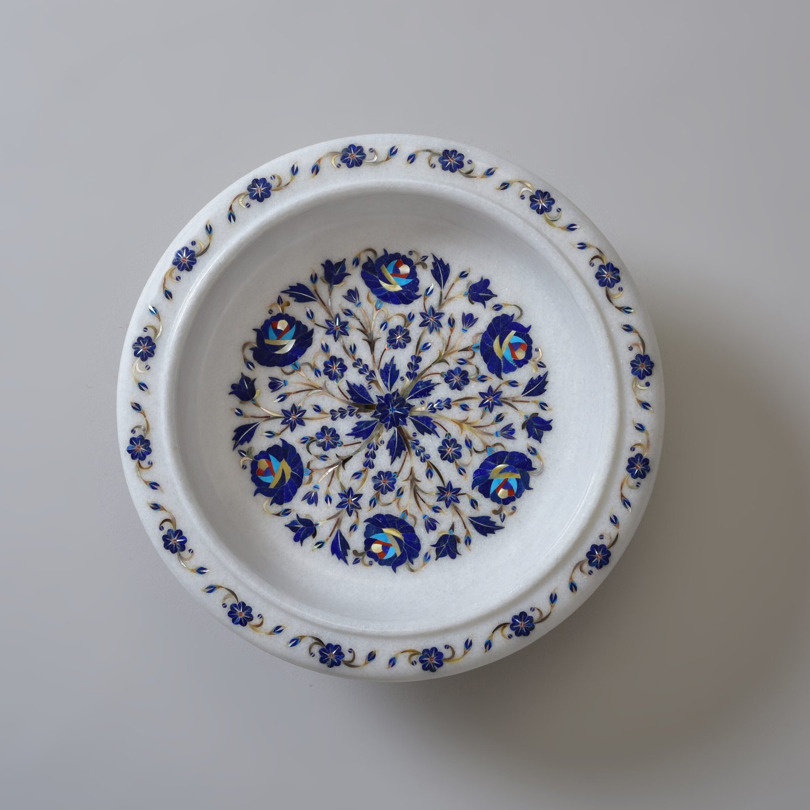 Some things are made to be kept. This white marble bowl, with its delicate floral Parchinkari inlay, is one of them. It marries utility with beauty, tradition with modern elegance. Every semi-precious stone is placed by hand, every motif a nod to India’s rich decorative history.