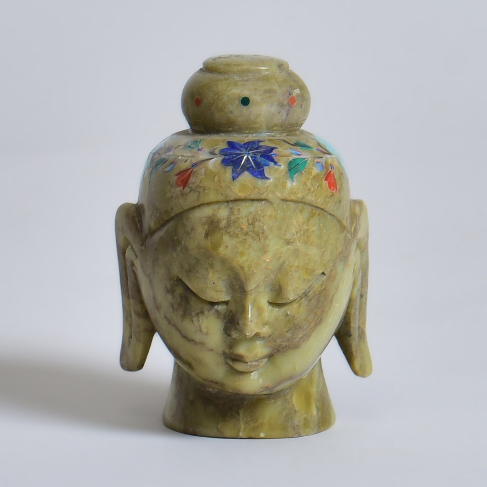 It sits in silence, yet says so much. The Buddha’s calm gaze, carved in deep brown stone, meets yours with quiet knowing. Embedded with semi-precious stones, each placed with care through the ancient Parchinkari craft, it holds centuries of stillness in its form. There’s no need for grandeur, it draws you in with presence alone. A gentle force, grounding and steady.