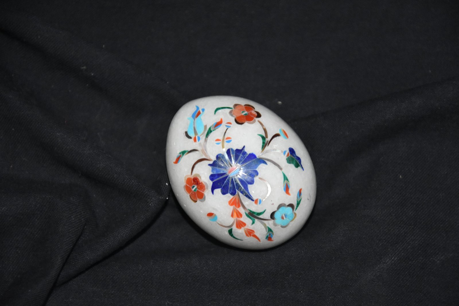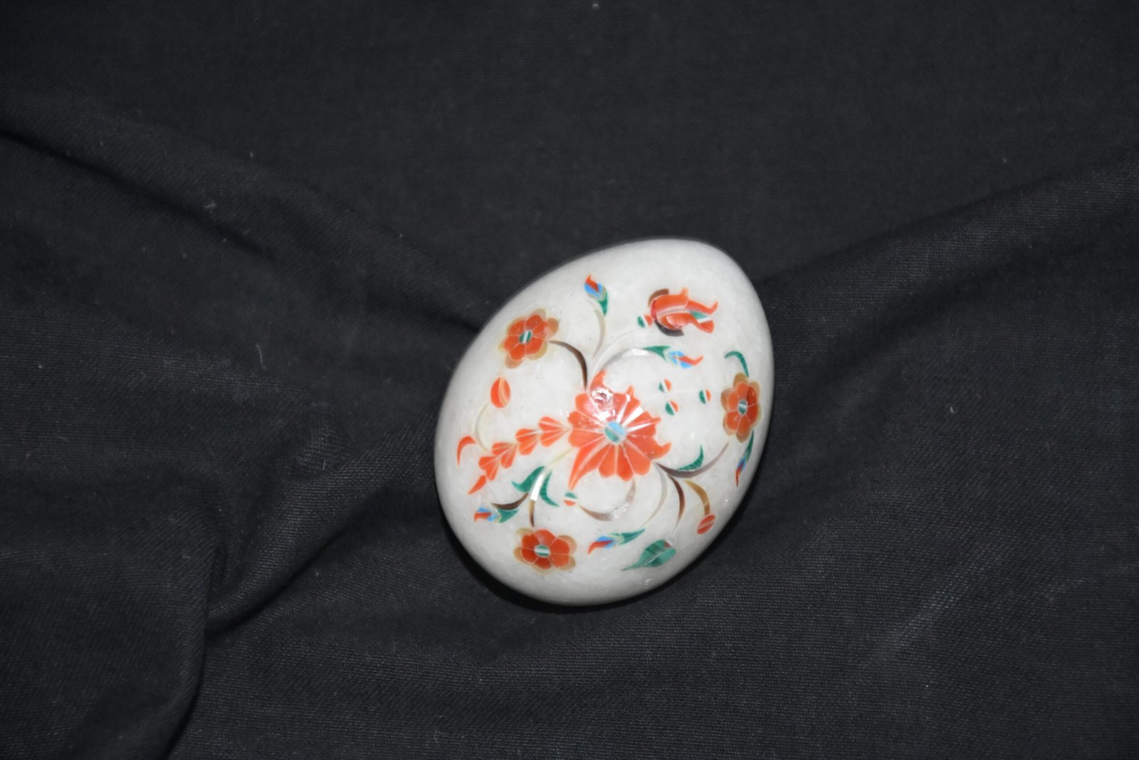 These marble Easter eggs are imagined as secret gardens sealed in stone. Through the refined discipline of Parchinkari, artisans set petals, buds, and stems with semi-precious stones into pristine white surfaces. The contrast between cool marble and vibrant semi-precious stones creates a living tapestry of springtime abundance. Balanced in elegant stands, the eggs radiate quiet opulence without excess. They are tokens of rebirth and artistry, destined to grace curated interiors and sacred holiday tables with enduring splendour for generations to admire and treasure forever.
