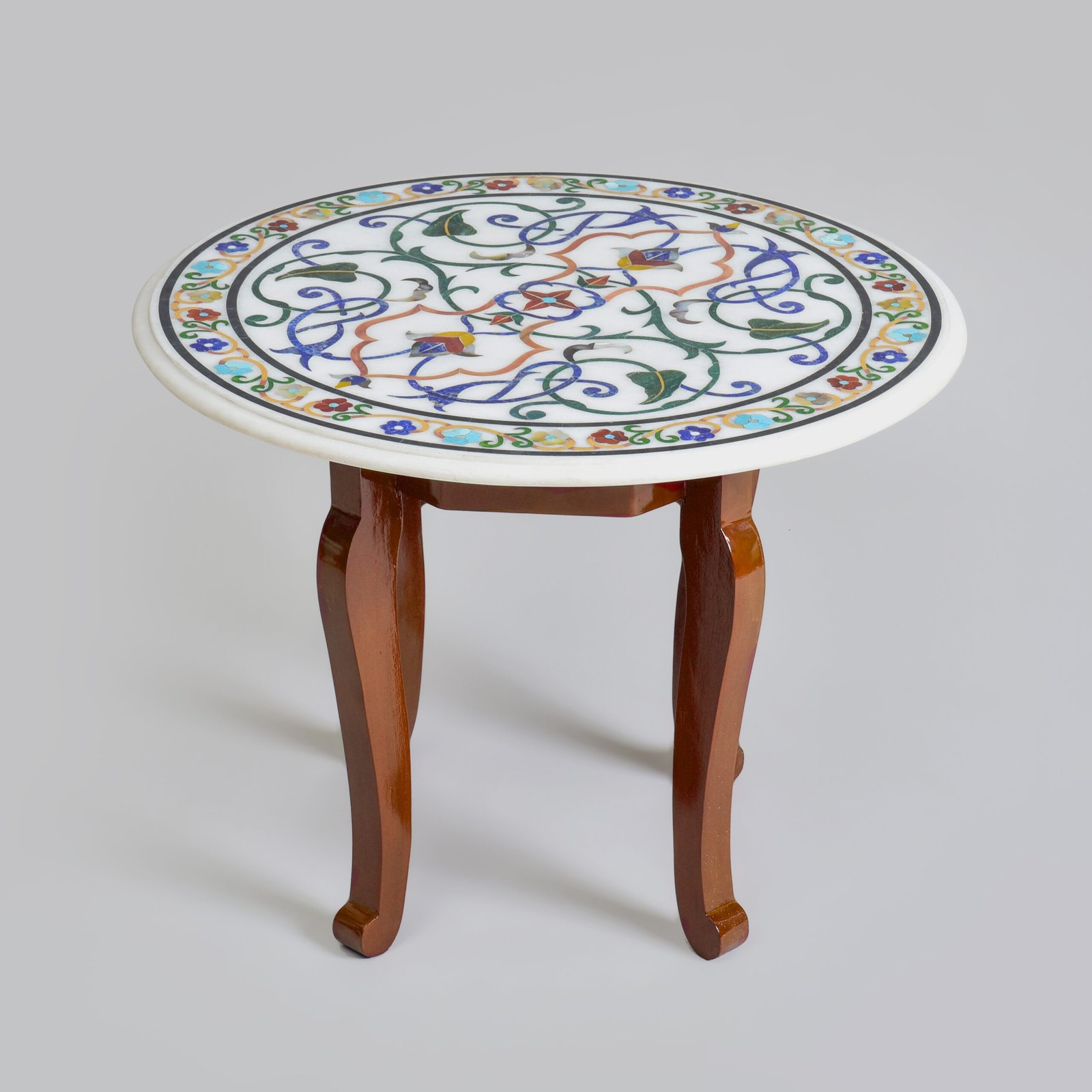 Inspired by the vibrant poetry of nature, this Parchinkari table blooms beneath your fingertips. Semi-precious stones are inlaid with precision to create patterns reminiscent of blossoming gardens and meandering vines. Each detail feels organic yet deliberate, a harmony of nature’s spontaneity and the artisan’s discipline. As light falls upon the surface, the colors awaken, glowing with a richness that no paint could match. It is a celebration of life, carved and set into stone, ready to transform your interiors into spaces that feel both timeless and tender.