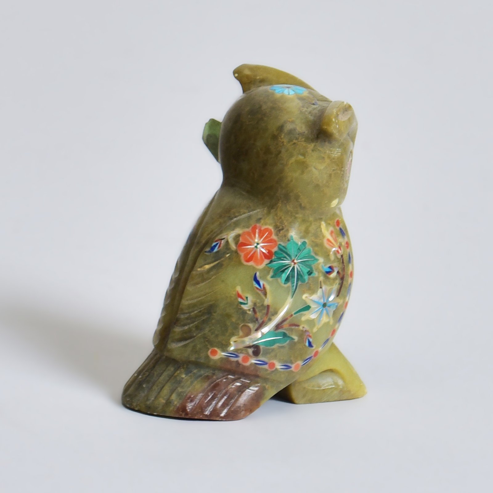 Elegance and wisdom intertwine in this exquisite marble owl, a timeless emblem of insight and protection. Crafted with delicate Parchinkari artistry, its surface blooms with intricate floral patterns, each petal lovingly inlaid with radiant semi-precious stones that catch the light like whispers of nature’s soul.