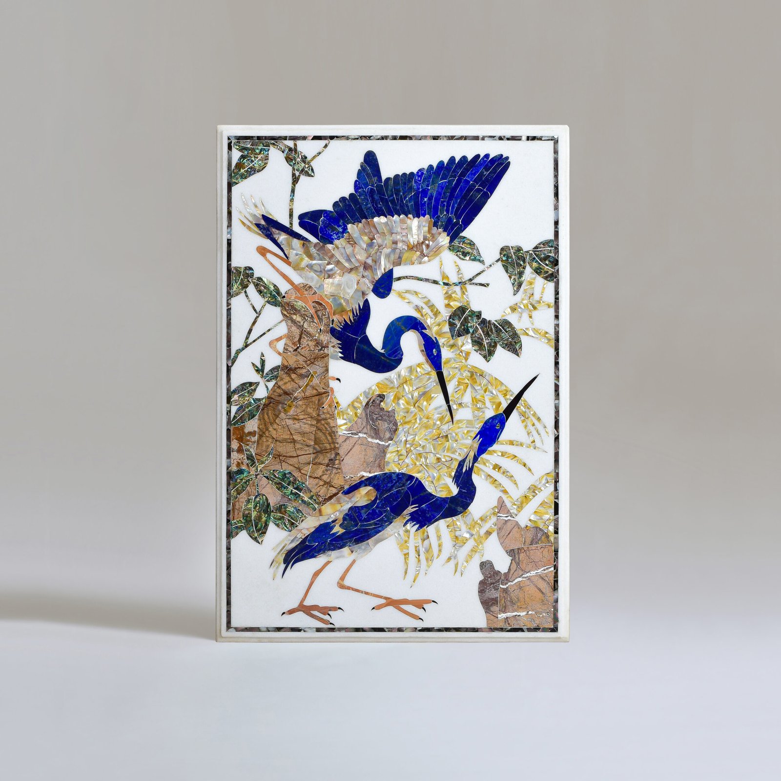 Delicate yet dignified, this marble wall art depicts grace and poise. It echos a quiet elegance, while subtle details bring a sense of rhythm and balance to the composition. Rooted in symbolism, cranes often represent longevity, peace, and fidelity, making this piece not just visually striking, but deeply meaningful. Whether placed in an entryway, hallway, or above a console, it lends a sense of serenity and refined charm to any space. An ode to grace, togetherness, and timeless beauty in motionless flight.